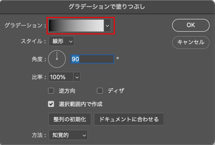 今回は上側から下側へのグラデーションを行います。